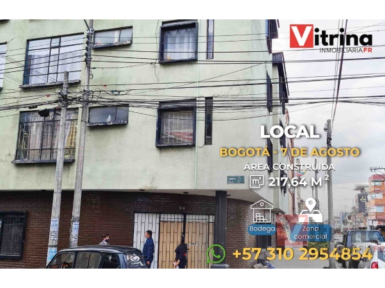 Vitrina inmobiliaria vende excelente local muy bien ubicado en el barrio 7 de agosto, cuenta con 3 oficinas, 2 baños privados, cocina, deposito, cuarto de redes. Local esquinero, sector comercial de fáciles vías de acceso y transporte publico
